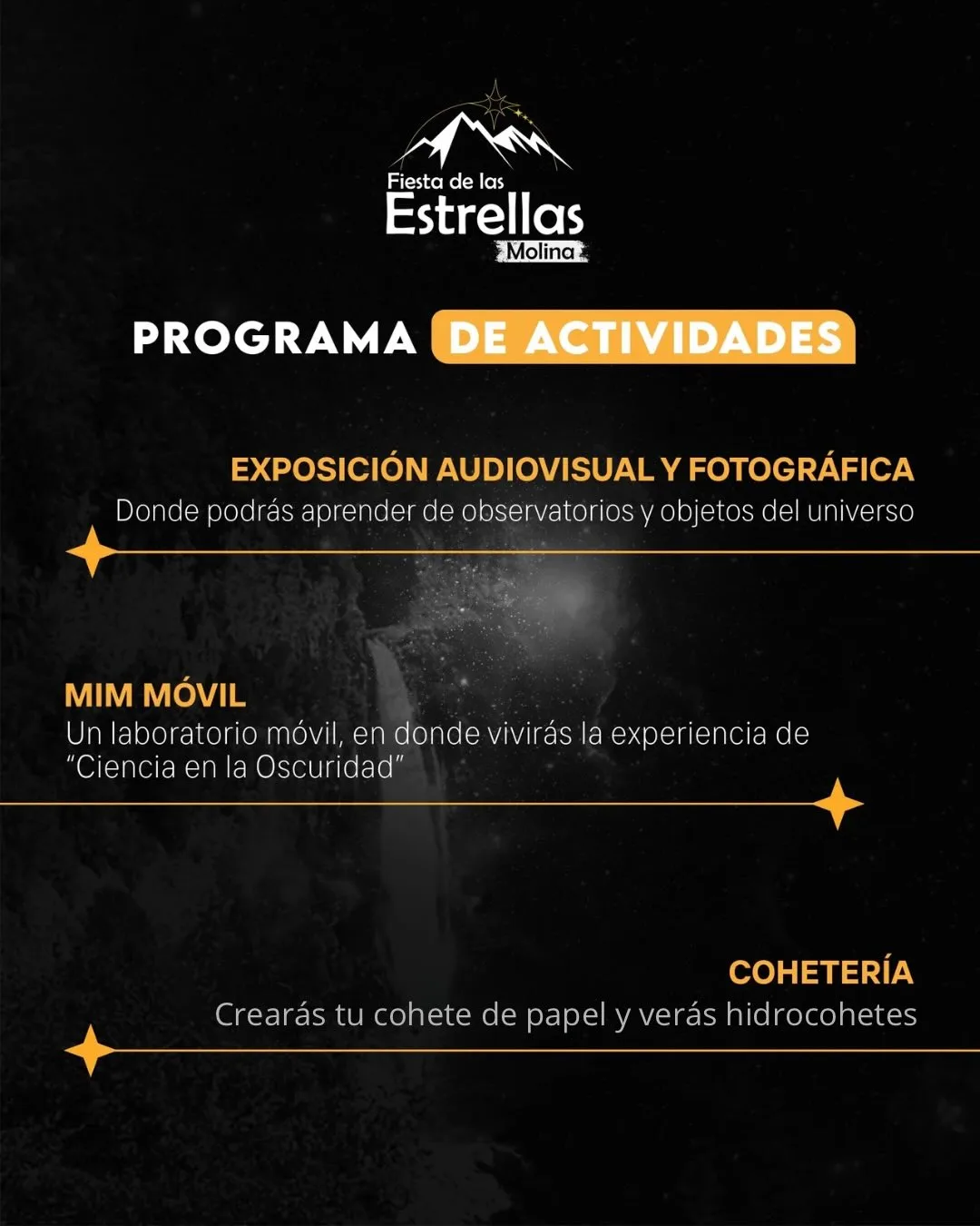 Durante ambas jornadas, los cielos molinenses serán el punto de encuentro para vecinas, vecinos y visitantes que podrán disfrutar de telescopios profesionales, instalados especialmente para observar cuerpos celestes y aprender sobre astronomía en un entorno natural único.