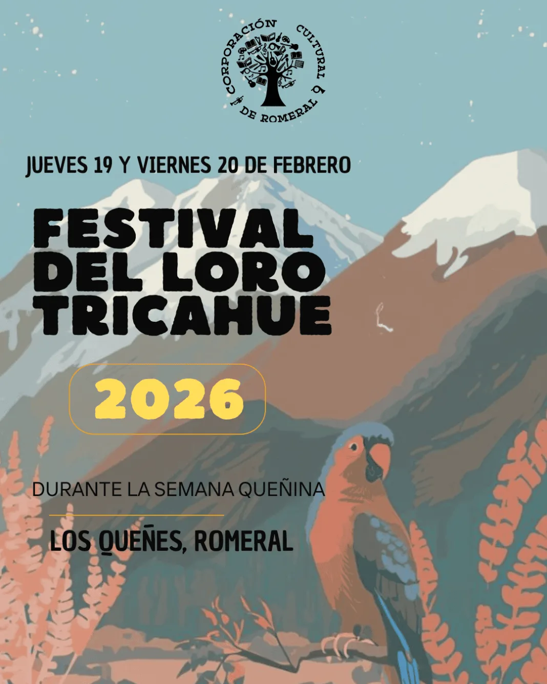 LOS QUEÑES, REGIÓN DEL MAULE – A los pies de la cordillera de Los Andes, la localidad de Los Queñes, en la comuna de Romeral, será escenario de una nueva edición del Festival del Loro Tricahue 2026, encuentro cultural de larga trayectoria que forma parte de la tradicional Semana Queñina y que se ha consolidado como un espacio relevante para la preservación del patrimonio inmaterial del territorio.
