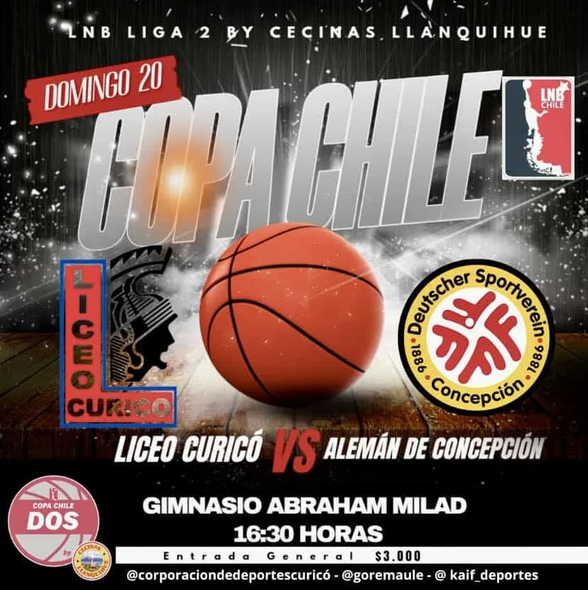 Este domingo 20 de noviembre, los fanáticos del baloncesto tendrán una cita imperdible en el Gimnasio Abraham Milad, donde el equipo local, Liceo Curicó, se enfrentará al equipo Alemán de Concepción. Este emocionante partido, parte de la Copa Chile, destaca la participación de Liceo Curicó, uno de los equipos más prometedores del torneo.