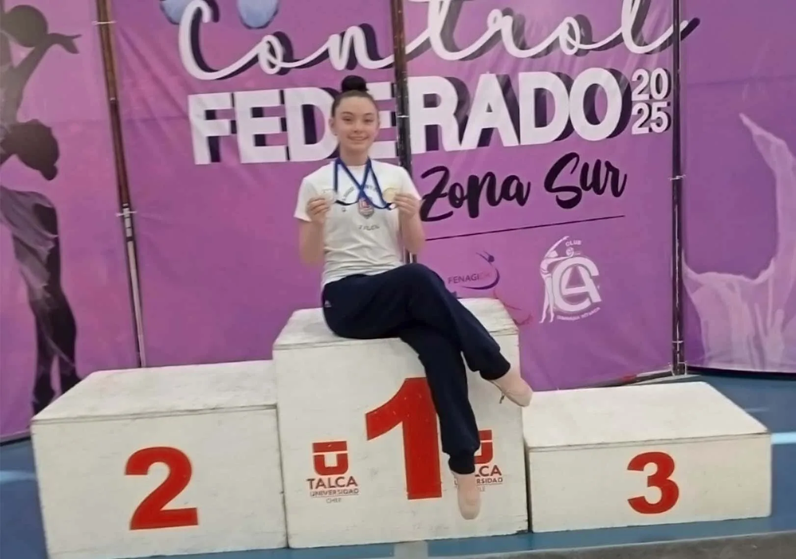 TALCA, REGIÓN DEL MAULE – La joven gimnasta Florencia De Gregorio, representante de Curicó, tuvo una sobresaliente actuación en el Segundo Control Federado Zona Sur de Gimnasia Rítmica, realizado el 19 de octubre en Talca, donde obtuvo medalla de oro en Clavas y plata en Cinta, en la Categoría Infantil A. Con estos resultados, la deportista aseguró su clasificación directa a la Final Nacional, que se disputará en Nueva Imperial entre el 18 y el 23 de noviembre.