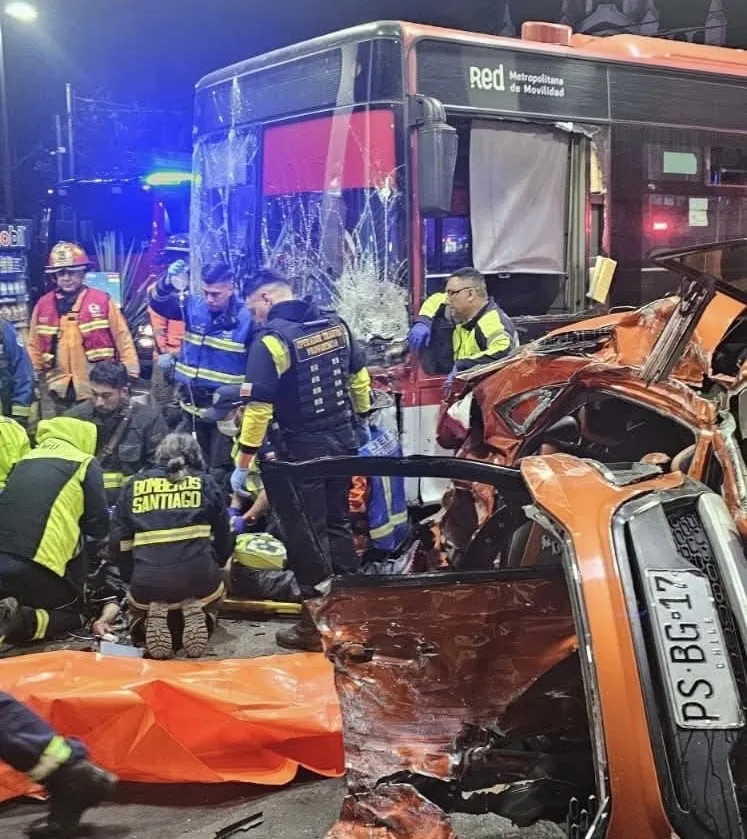 PROVIDENCIA, CHILE – Una persecución policial registrada la noche de ayer domingo 28 de septiembre en Providencia terminó con saldo fatal, luego de que cuatro individuos que huían tras un robo colisionaran violentamente con un bus del sistema RED en la intersección de Avenida Salvador con Santa Isabel. El impacto fue de tal magnitud que ambos vehículos se incrustaron dentro de un servicentro Copec.