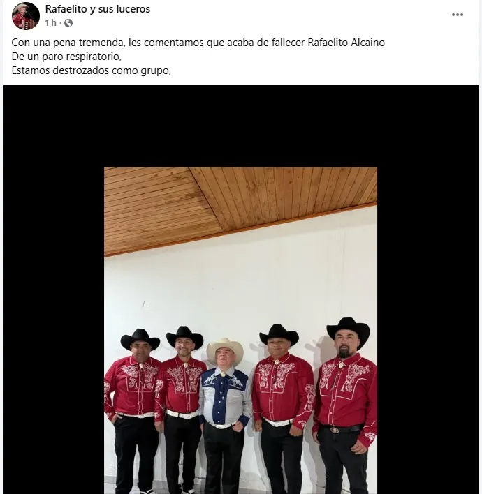 “Con una pena tremenda, les comentamos que acaba de fallecer Rafaelito Alcaíno, de un paro respiratorio. Estamos destrozados como grupo”, señalaron sus compañeros.