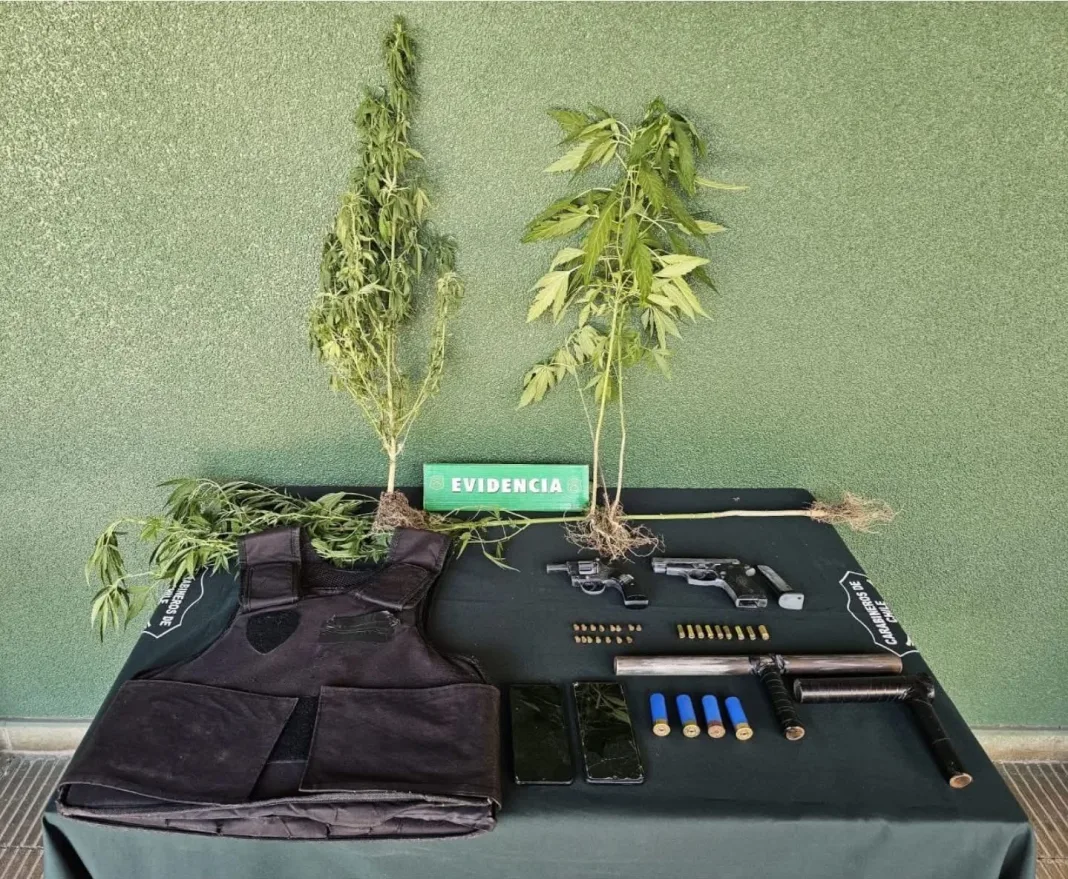 Durante el operativo, se incautaron diversas especies, entre ellas armamento de fabricación artesanal, armamento a fogueo adaptado para el disparo, munición y un chaleco antibalas.