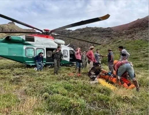 Un helicóptero de la Prefectura Aeropolicial permitió evacuar al afectado desde una zona cordillerana de difícil acceso