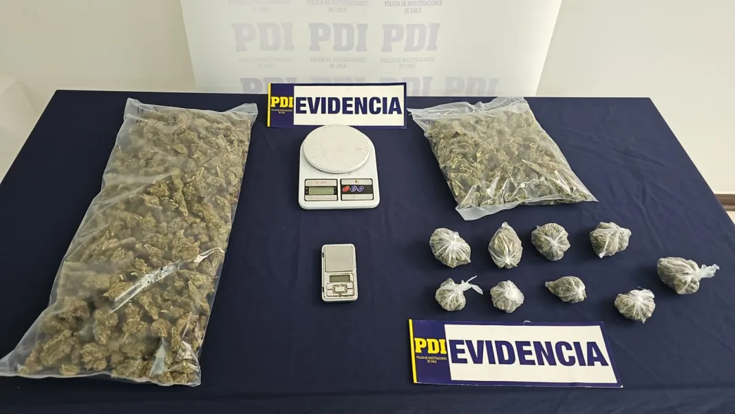 Operativo permitió la incautación de más de un kilo y medio de cannabis, balanzas digitales y otras especies asociadas al delito.