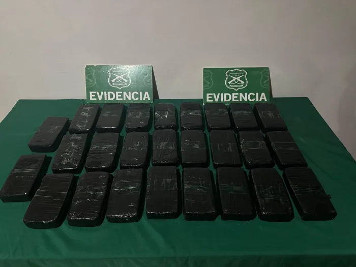 CHIMBARONGO, REGIÓN DE O’HIGGINS – Un procedimiento policial realizado durante la madrugada permitió a Carabineros incautar 27 kilos de clorhidrato de cocaína, avaluados en más de $1.300 millones, tras fiscalizar un vehículo en la Ruta 5 Sur, a la altura de la comuna de Chimbarongo. El operativo culminó con dos detenidos, de 35 y 38 años, quienes posteriormente quedaron en prisión preventiva.