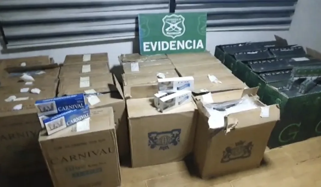 El procedimiento se originó cuando un furgón marca Citroën adelantó a gran velocidad a un vehículo policial, lo que motivó un control por parte de Carabineros. Al efectuar la fiscalización, los funcionarios observaron cajas de cigarrillos a simple vista en el asiento del acompañante, lo que derivó en una revisión más detallada.