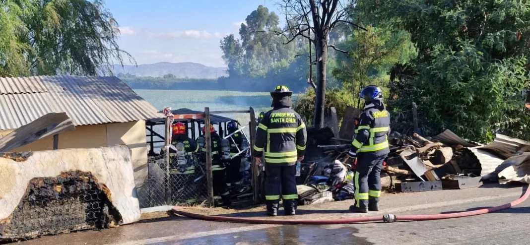 SANTA CRUZ, REGIÓN DE O’HIGGINS – Pasadas las 17:00 horas de este jueves, un incendio de rápida propagación afectó al sector Paso Los Reyes, en la comuna de Santa Cruz, dejando como resultado la muerte de una persona y la destrucción total de dos viviendas de material ligero. La emergencia generó una amplia movilización de unidades de Bomberos, debido a la intensidad del fuego y al riesgo de que se extendiera a estructuras cercanas.