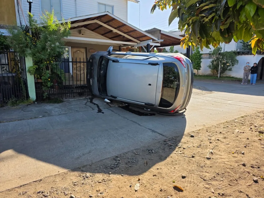 CURICÓ, REGIÓN DEL MAULE – Equipos de emergencia de la ciudad se trasladaron durante la mañana de este miércoles 5 de noviembre hasta la Villa Víctor Domingo Silva, en el sector Rauquén, tras una colisión entre dos vehículos que terminó con el volcamiento de uno de los móviles involucrados.