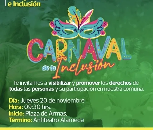 CURICÓ, REGIÓN DEL MAULE – La Municipalidad de Curicó, a través de su Corporación de Deportes, desarrollará el “Carnaval de la Inclusión 2025” el próximo jueves 20 de noviembre desde las 09:30 horas, en una jornada que comenzará en la Plaza de Armas y culminará en el Anfiteatro Alameda. La actividad forma parte de las acciones comunales por el Mes de la Discapacidad e Inclusión, buscando promover el respeto, la diversidad y el derecho a participar plenamente en la vida comunitaria.