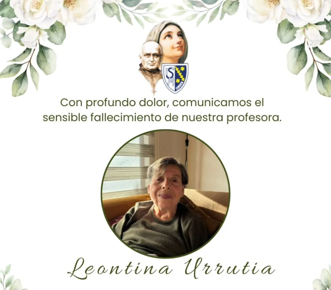 En el mensaje, la congregación manifestó su cercanía con la familia y con toda la comunidad religiosa y educativa del establecimiento, ofreciendo acompañamiento y oración por el eterno descanso de la profesora Leontina, así como por el consuelo y la paz de quienes compartieron con ella años de vida, servicio y vocación educativa.