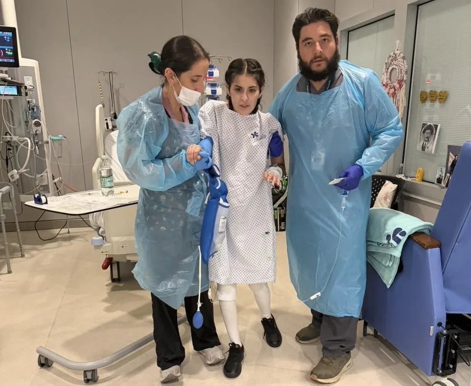 Tras 58 días en cuidados intensivos, Denisse fue trasladada a una unidad de menor complejidad, donde continúa su proceso de recuperación. Uno de los avances más recientes ha sido lograr ponerse de pie y dar sus primeros pasos, un hito que el equipo médico calificó como altamente significativo considerando la gravedad inicial del cuadro.
