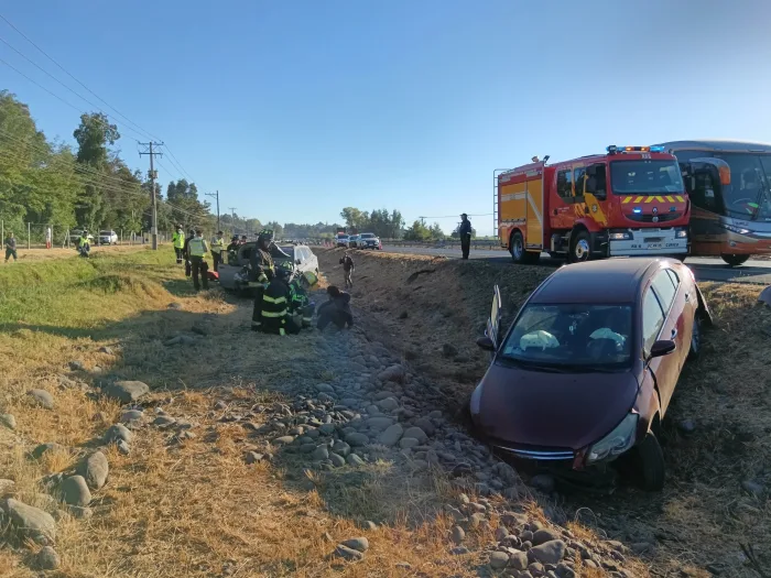 El accidente involucró a dos vehículos particulares, los que por causas que son materia de investigación colisionaron y posteriormente perdieron el control, terminando ambos móviles al interior de una zanja a un costado de la ruta.