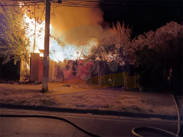 CURICÓ, REGIÓN DEL MAULE – Durante la madrugada de este jueves 19 de febrero, un violento incendio estructural se registró en el sector sarmiento, específicamente en Calle Centenario con Arturo Prat, a pocos metros de la avenida principal, dejando como saldo una vivienda completamente destruida y siete personas damnificadas.