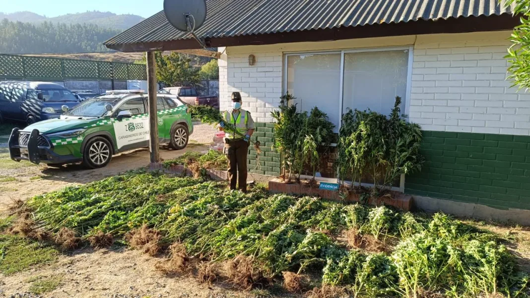 LICANTÉN, REGIÓN DEL MAULE – Un cultivo ilegal de plantas del género Cannabis Sativa fue descubierto por Carabineros de la 2ª Comisaría de Licantén, luego de recibir una denuncia anónima que alertó sobre la presencia de plantaciones en una quebrada de difícil acceso del sector Los Junquillos, en la comuna.