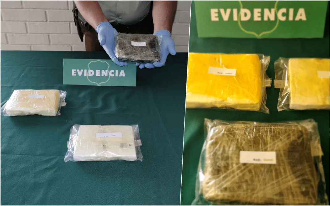 Los detenidos, identificados como D.E.G.T., de 28 años, y C.P.C.M., de 29 años, ambos de nacionalidad chilena y con antecedentes policiales, fueron capturados transportando 1 kilo 593 gramos de clorhidrato de cocaína, escondidos en el portamaletas de su vehículo.