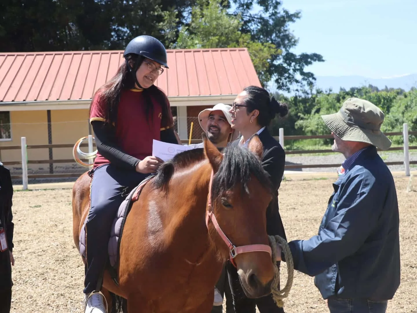 Desde la mirada de los estudiantes, Trinidad Saavedra Pérez, participante del programa, compartió su experiencia. “El trabajo con los caballos me ayudó a tener más confianza, a conocerlos mejor y a estar tranquila. Me enseñaron que si estás con personas que los entienden, los caballos te transmiten calma y te ayudan a confiar en ti misma”, comentó.