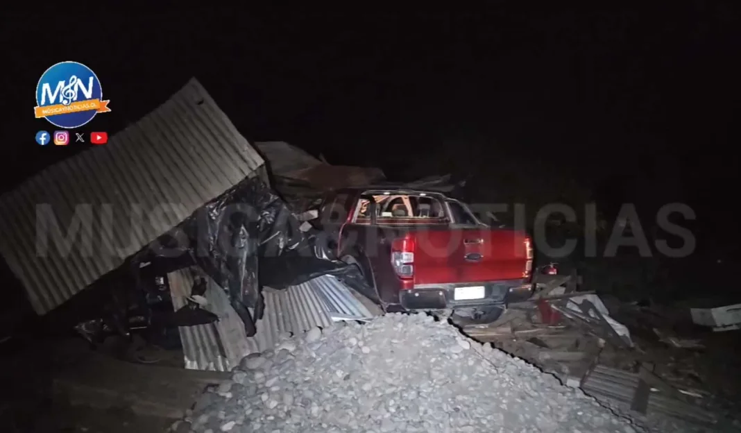 RAUCO, REGIÓN DEL MAULE – Pasadas las 21:00 horas de este martes 30 de septiembre, un grave accidente de tránsito se registró en el kilómetro 21 de la Ruta J-60, sector Tricao, cuando una camioneta Ford, patente JPRF-73, que transitaba cargada con extintores, perdió el control en una curva, chocó contra un cierre perimetral y posteriormente se incrustó en una vivienda de material ligero.