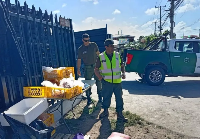 El operativo se originó alrededor de las 10:00 horas de este viernes, luego de recibir múltiples denuncias telefónicas que alertaban sobre la venta ambulante de productos cárnicos en condiciones insalubres. En el lugar, Carabineros constató que un hombre chileno y una mujer de nacionalidad haitiana comercializaban carne sin permiso municipal y sin cumplir las condiciones mínimas de refrigeración exigidas por la normativa sanitaria.