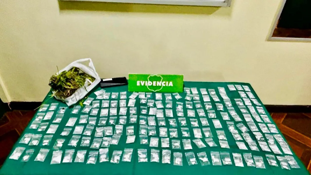 Al concurrir al lugar, los funcionarios policiales verificaron que en el interior del vehículo se encontraba un sujeto, quien mantenía dos frascos transparentes con pequeñas bolsas contenedoras de una sustancia blanca, además de una bolsa con una sustancia vegetal de color verde, procediendo a su detención en el sitio del suceso.