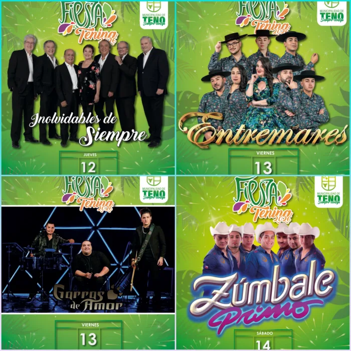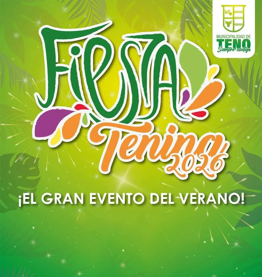 TENO, REGIÓN DEL MAULE – La comuna de Teno oficializó la programación artística de la Fiesta Tenina 2026, evento que se desarrollará los días 12, 13 y 14 de febrero en el Estadio Municipal, instancia que contará con presentaciones de reconocidos exponentes de la música nacional e internacional, además de un componente solidario en apoyo a familias afectadas por incendios en el sur del país.