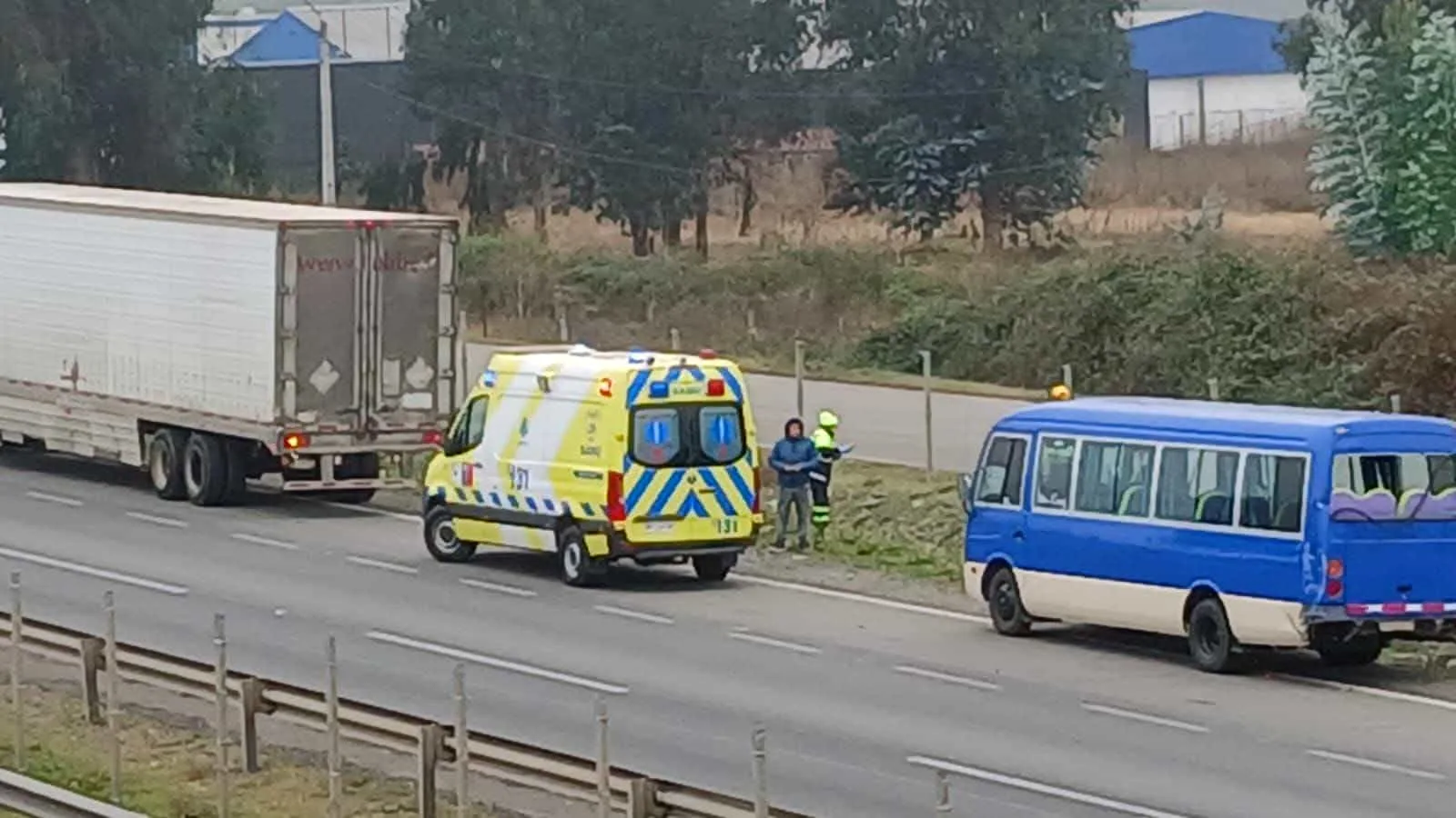 Hasta el sitio del suceso concurrieron equipos de Bomberos, Carabineros y personal de la concesionaria, quienes trabajaron en la atención de la emergencia y en la regulación del tránsito.