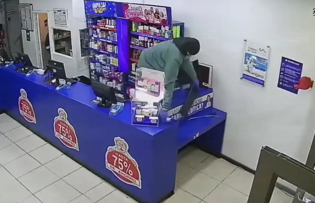Uno de los hechos más recientes quedó registrado en cámaras de seguridad, cuando el joven ingresó a la Farmacia del Doctor Simi, ubicada en calle Independencia, en el sector céntrico de Linares. En esa ocasión, saltó el mesón de atención e intimidó a las trabajadoras con el arma, quienes se refugiaron al interior del local, lo que permitió al sujeto sustraer parte de la recaudación.