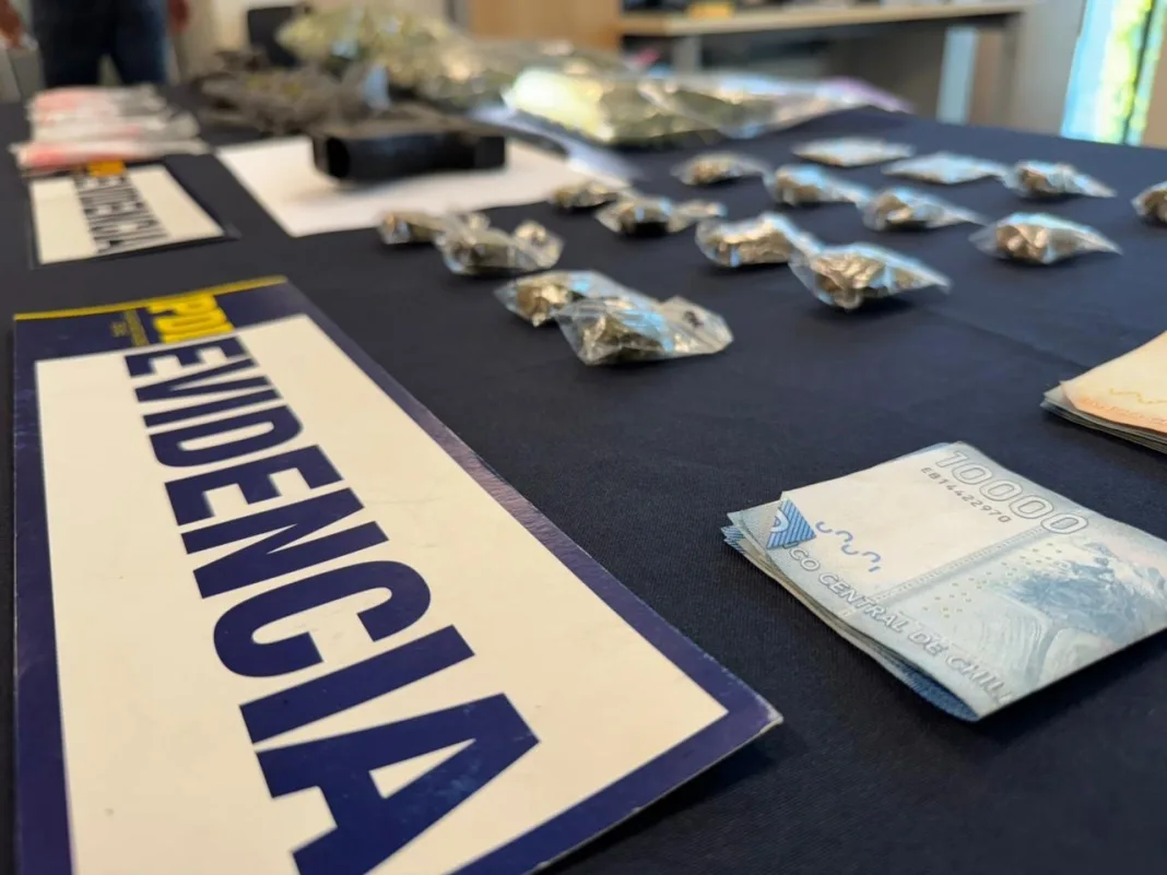 Durante la intervención, los funcionarios lograron la incautación de 924,06 gramos de cannabis, además de cinco plantas de cannabis en proceso de crecimiento. Junto con ello, se decomisó dinero en efectivo, un teléfono celular, una pistola a fogueo con cargador y 13 cartuchos calibre 9 milímetros.