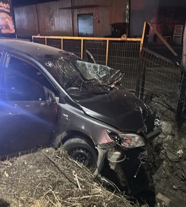 LINARES, REGIÓN DEL MAULE – Durante la madrugada de este sábado 15 de noviembre, un violento accidente vehicular se registró en la intersección de Avenida León Bustos con Quiñipeumo, luego de que un automóvil perdiera el control e impactara con fuerza un poste del tendido eléctrico para posteriormente chocar contra el cerco perimetral de un local comercial.