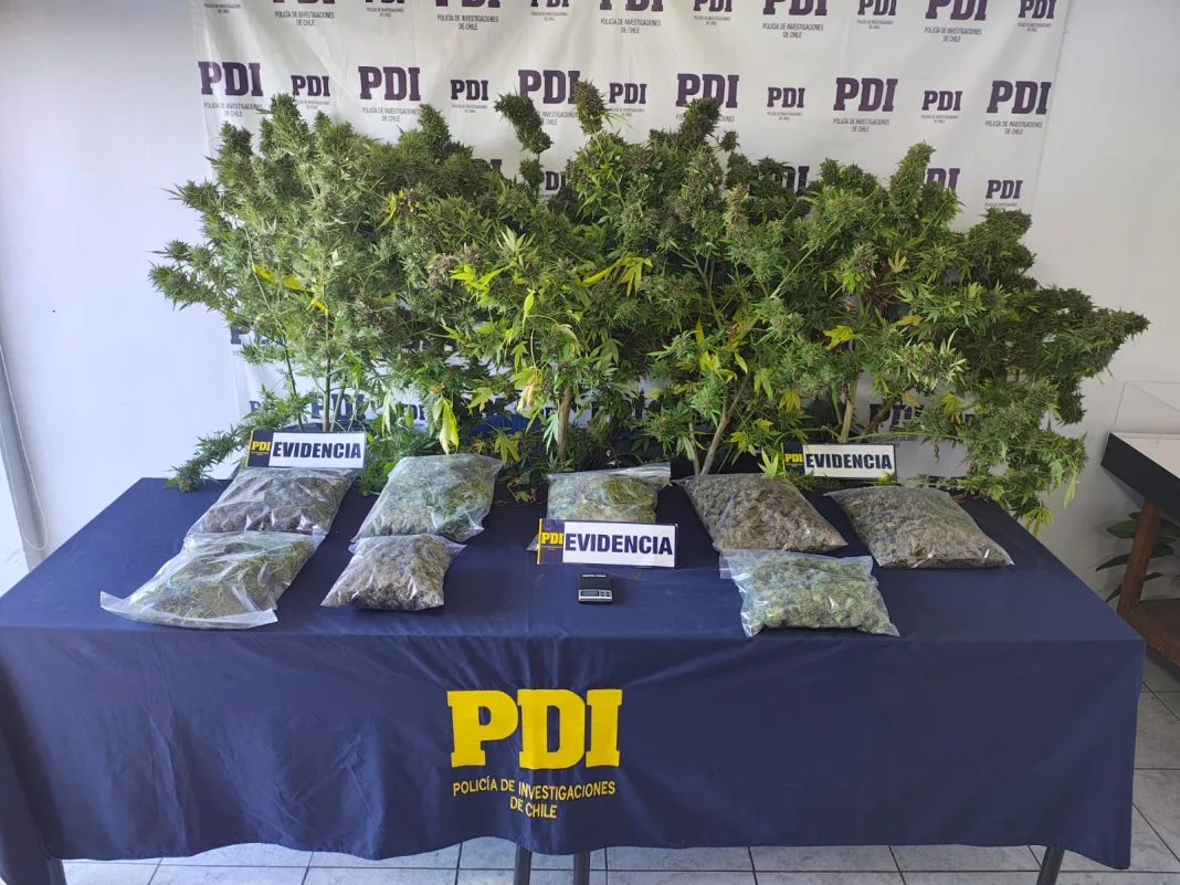 En el lugar, se incautaron seis plantas de cannabis de entre 1 y 1,5 metros de altura, además de 4.484,8 gramos de cannabis a granel, configurando una infracción a la normativa vigente en materia de drogas.