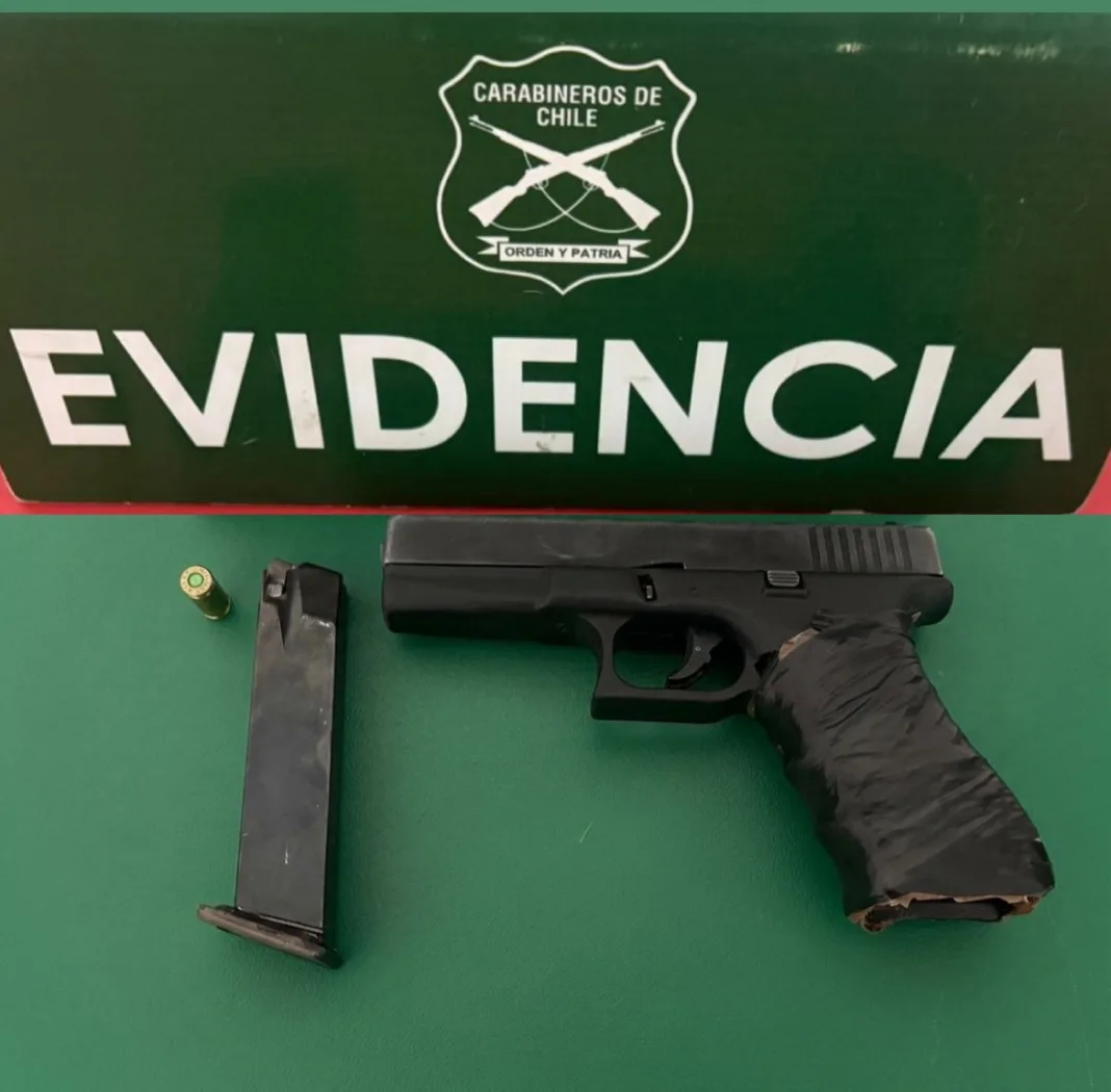 Tras la alerta, personal de Carabineros de la 5ª Comisaría de San Javier concurrió al lugar, realizando un registro del domicilio, donde se logró incautar un arma de fuego tipo pistola, un cargador y una munición de fogueo.