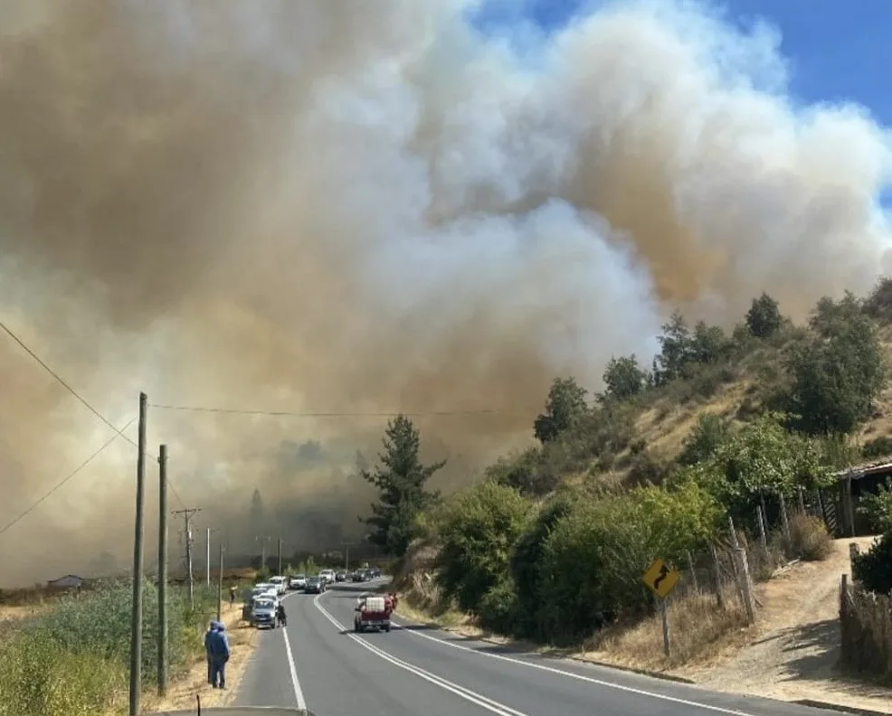 CUREPTO, REGIÓN DEL MAULE – Un incendio forestal se mantiene activo desde la tarde de este sábado 28 de febrero en la comuna de Curepto, afectando pastizales, matorrales y arbustos en un sector cercano a la ruta R-21, situación que motivó el despliegue de diversos equipos de emergencia.