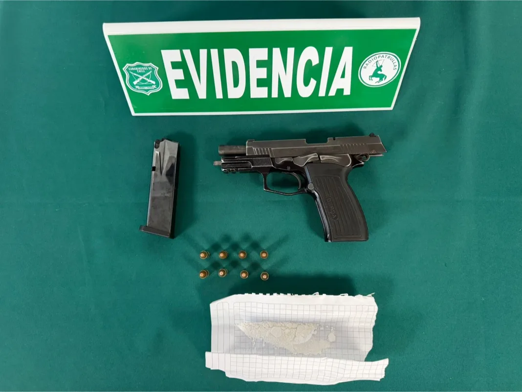 TALCA, REGIÓN DEL MAULE – Un hombre de 39 años fue detenido por Carabineros de la Sección Centauro de la Prefectura de Talca, durante la mañana de este martes, tras ser sorprendido portando un arma de fuego, munición y droga en un procedimiento desarrollado en el sector norte de la ciudad.