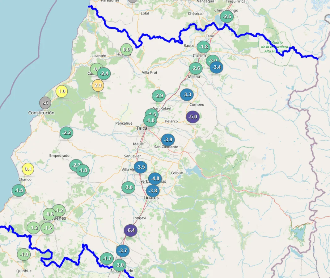 La reciente ola de frío que ha impactado varias regiones de Chile ha registrado temperaturas extremas en el Maule, con mínimas de hasta -6,4 grados Celsius, según la red agrometeorológica del Instituto de Investigaciones Agropecuarias (INIA). Este fenómeno ha puesto en alerta a los agricultores de la región, dado que las bajas temperaturas sostenidas pueden causar daños severos a los cultivos.